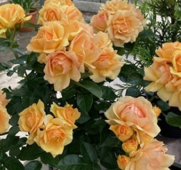 Blüte: gefüllte gelborgange-apricot Blüten, süßlich duftend, öfterblühend