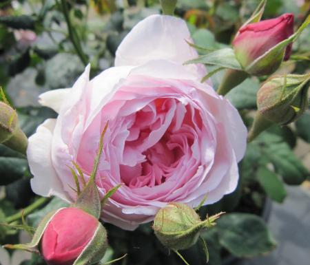 Blüte: halbgefüllt, zartrosa, schalenförmig, öfterblühend, stark duftend