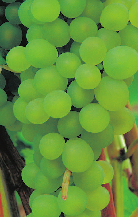 Frucht: Gelb-weiß, mittelgroße und ovale Trauben, fruchtig süßer und aromatischer Geschmack, sehr kernarm, Tafeltraube, Keltertraube.